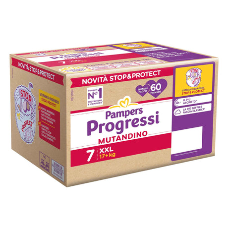 €44,99€0,75 al pzNon disponibilePampers Mutandine Progressi Taglia 7 (+17 kg) Quadripacco 60 pezzi