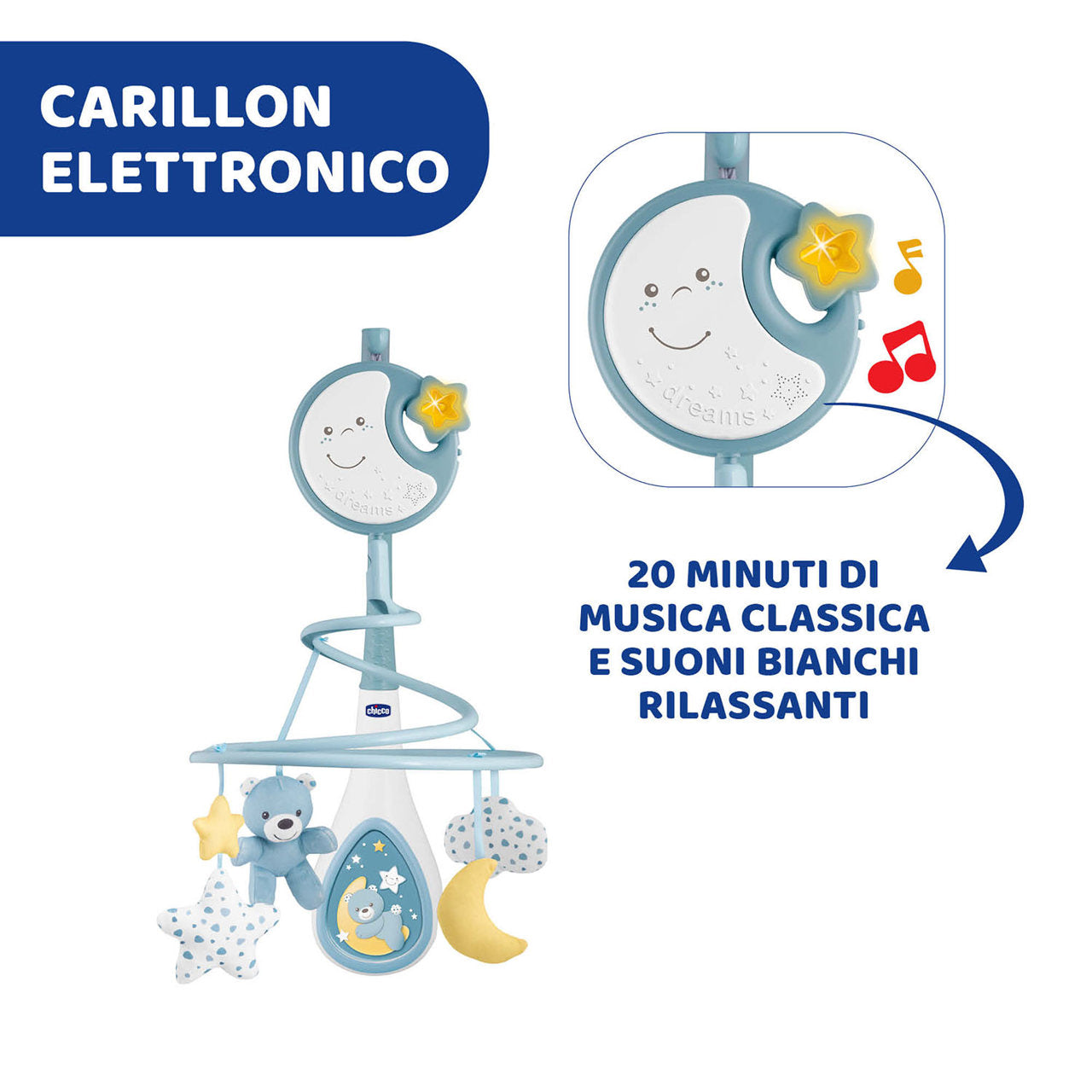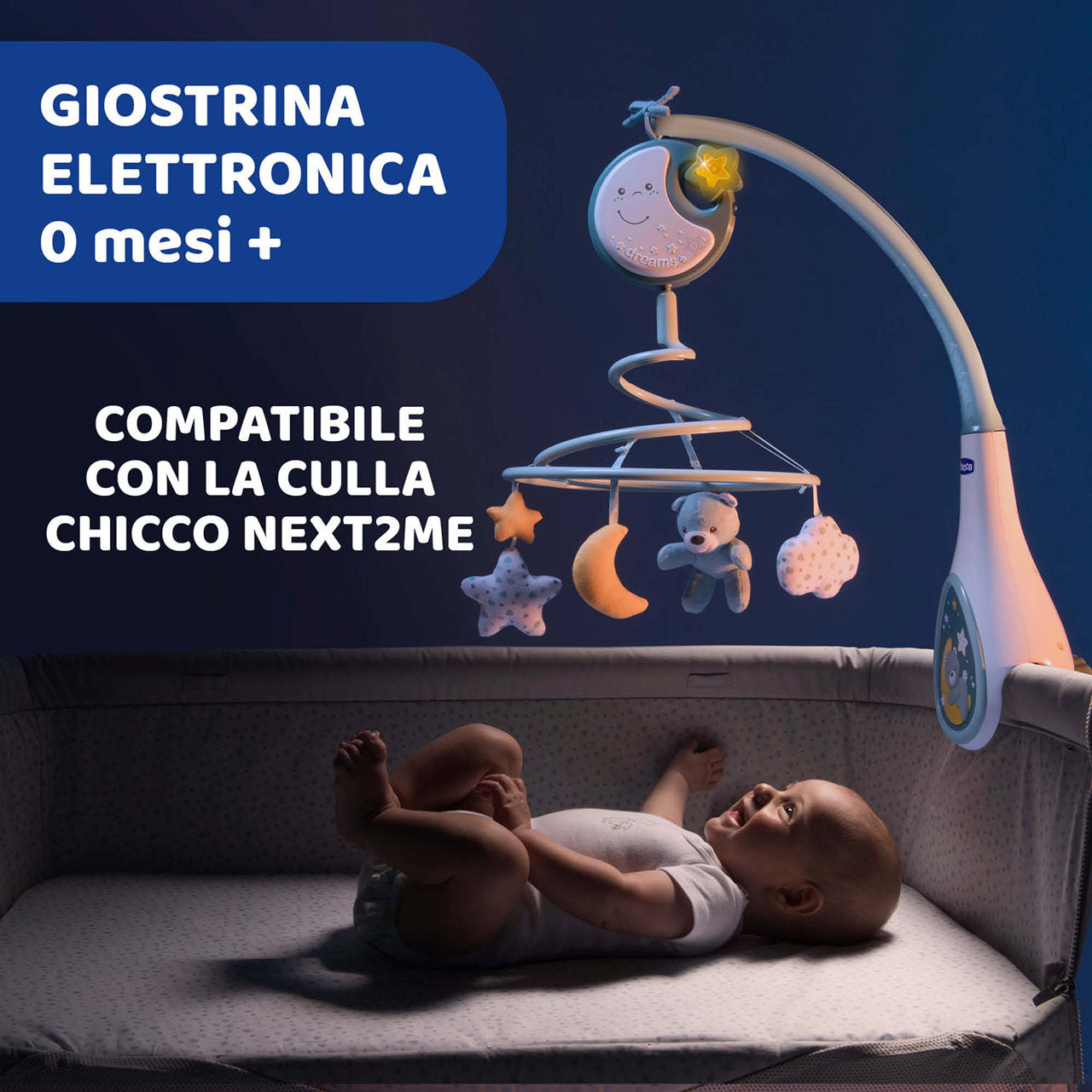 La nanna è assicurata con la giostrina Next2Dreams, che dona momenti di svago e relax al bambino grazie a melodie rilassanti e luci tenui.
