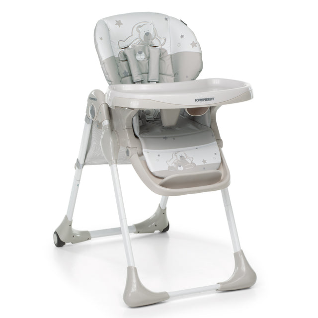 Il seggiolone Meeting di Foppapedretti è la soluzione pratica e versatile per l'alimentazione del tuo bambino. Con seduta e schienale regolabili, si adatta perfettamente alla crescita del piccolo dai 6 mesi fino a 15 kg. L'imbracatura a 5 punti garantisce sicurezza durante i pasti, mentre il vassoio regolabile in 3 posizioni e il vassoietto removibile semplificano la pulizia quotidiana. Le due ruote posteriori in gomma permettono di spostarlo facilmente da una stanza all'altra, e il cesto portaoggetti integrato offre praticità. Disponibile in varie colorazioni e fantasie, si integra perfettamente in qualsiasi ambiente. Compatto e chiudibile, è l'alleato ideale per le famiglie che cercano funzionalità e design.
