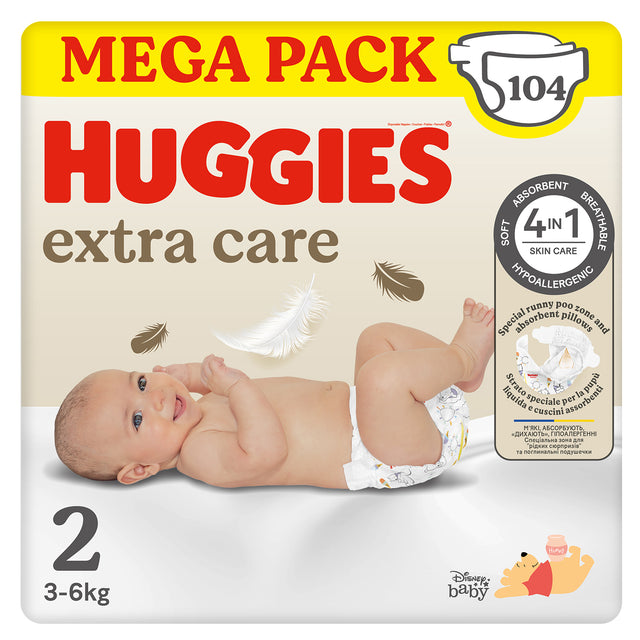 Huggies Pannolini Extra Care Taglia 2 (3-6 kg) Megapack 104 pezzi