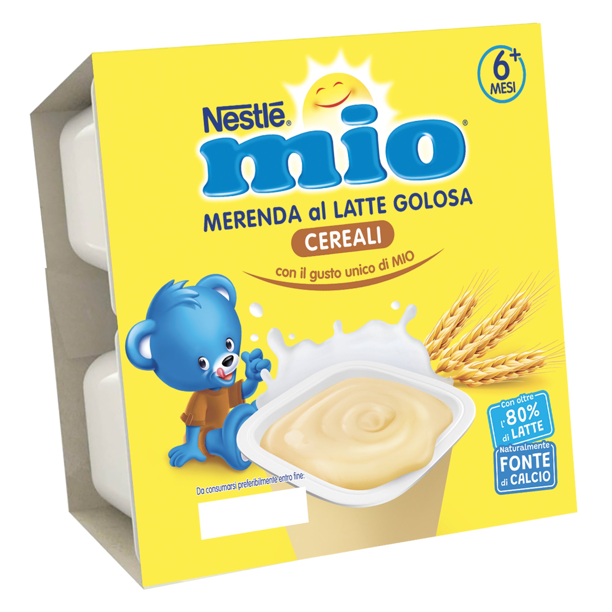 La Merenda al Latte Nestlé MIO CEREALI è preparata con oltre l’85 % di latte e contiene naturalmente calcio, che contribuisce allo sviluppo normale delle ossa.