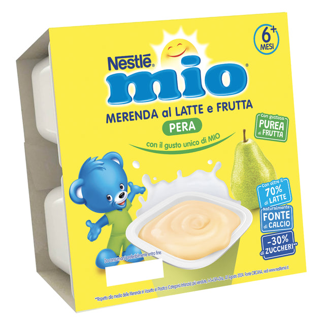 La Merenda al Latte Pera Nestlé Mio è preparata con oltre l'80% di latte ed è ricca di calcio e magnesio, minerali importanti per lo sviluppo delle ossa.