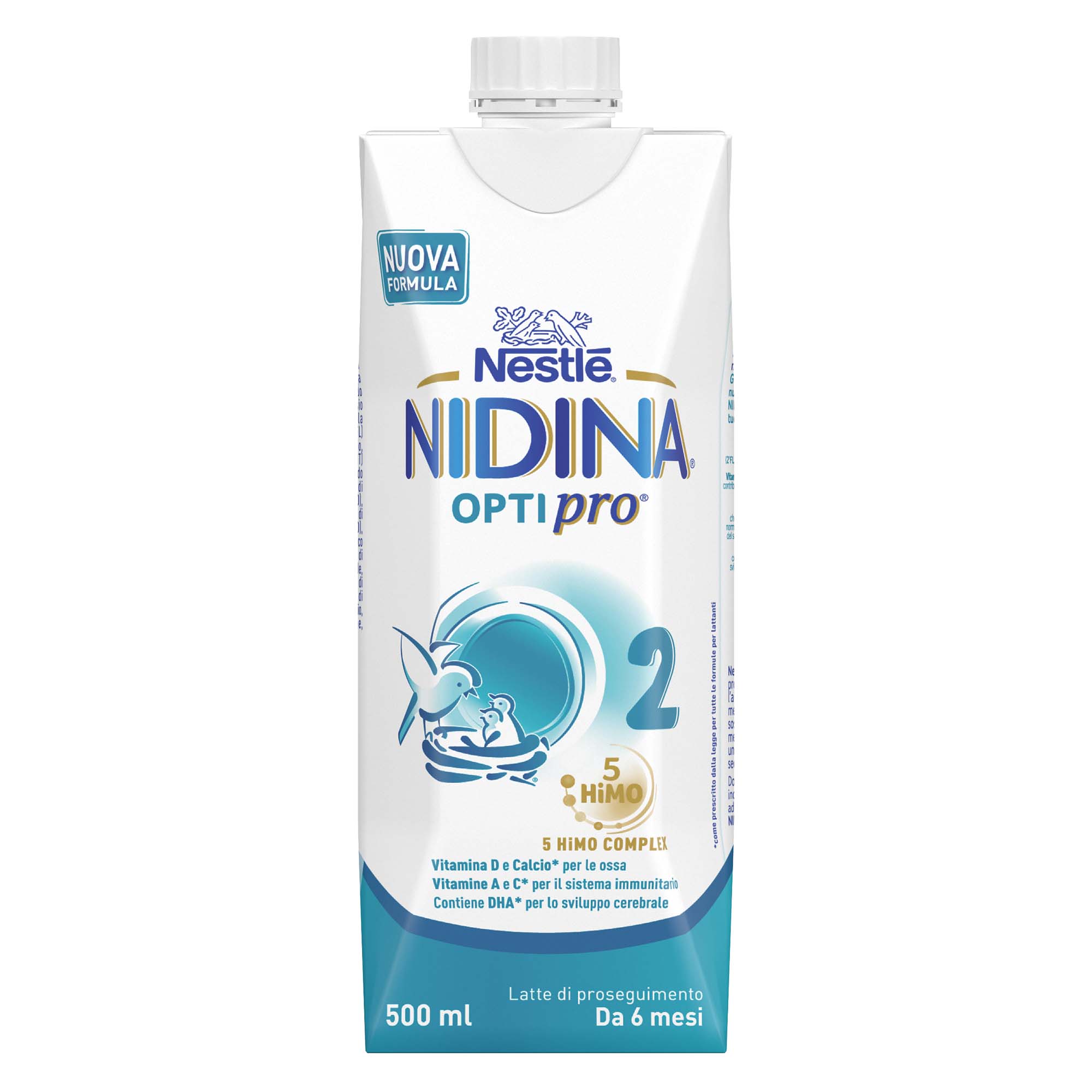 Nestlé® NIDINA® OPTIpro® 2 è un latte di proseguimento liquido indicato per l'alimentazione del lattante a partire da 6 mesi di vita. Non deve essere utilizzato in sostituzione del latte materno nei primi 6 mesi di vita. È formulato per far parte di un'alimentazione diversificata, da iniziare secondo le indicazioni del Pediatra.
