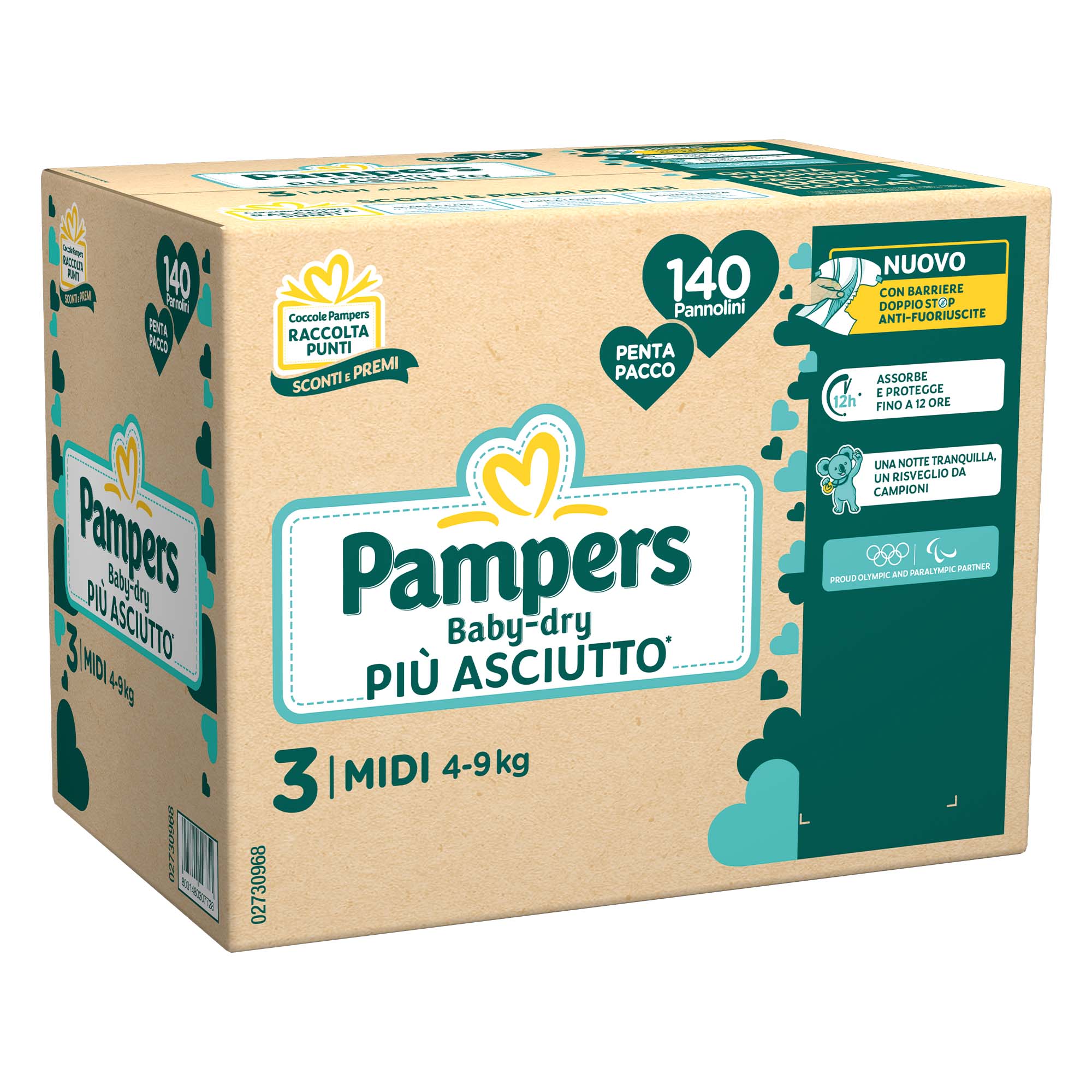 Pampers Pannolini Baby-Dry Taglia 3 (4-9 kg) Pentapacco 140 pezzi